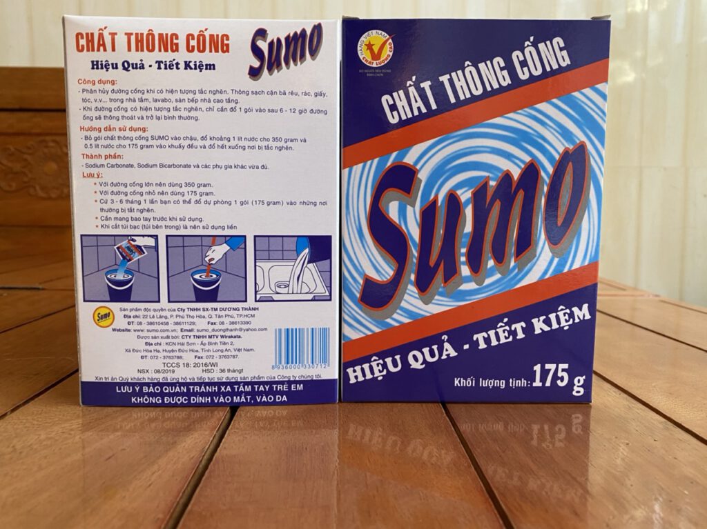 Bột thông cống Sumo 175g giúp phân hủy các chất hữu cơ thối rữa tính tụ lâu ngày trong bể phốt từ chất thải, thức ăn dư thừa, giấy vệ sinh trong quá trình sử dụng của con người.