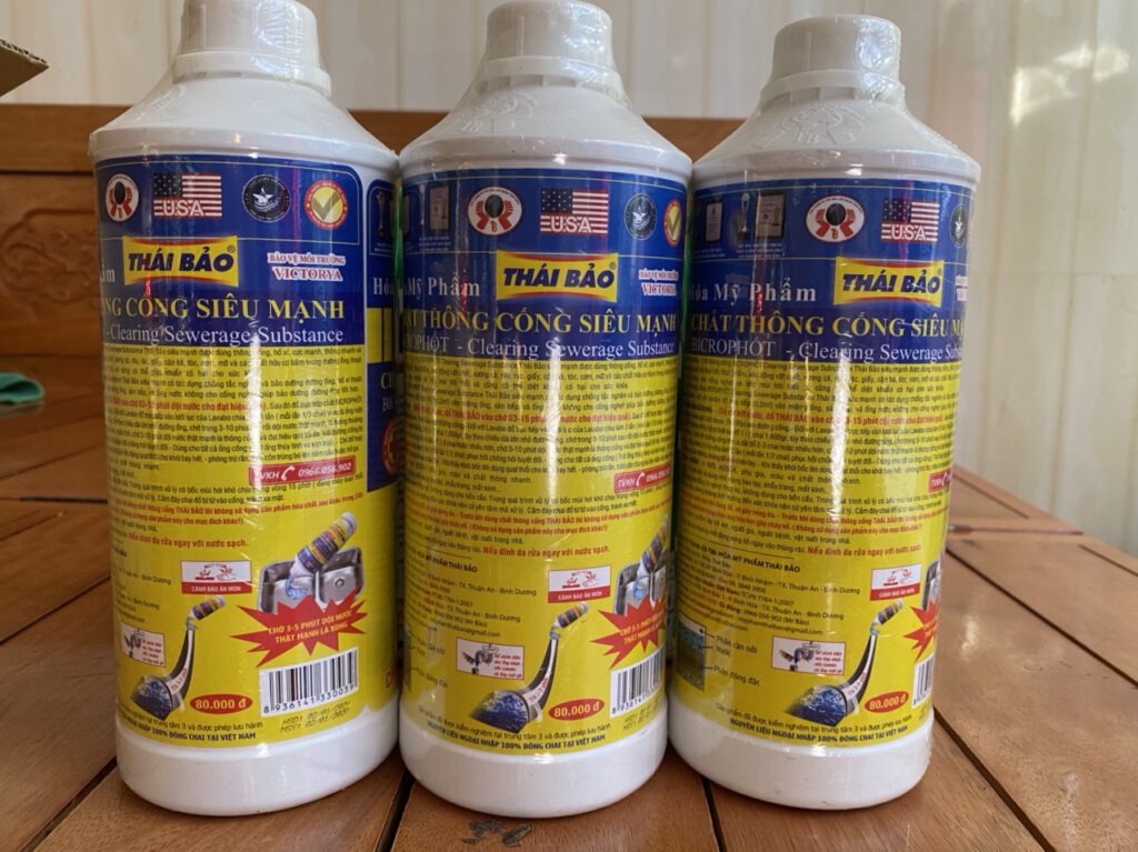 Nước thông ống cống Thái Bảo Trọng lượng 1,6 LÍT/ 1 chai giúp bạn giải quyết các vấn đề tắc, nghẽn cống, lối thoát nước, bồn cầu một cách hữu hiệu, nhanh chóng. Khi đổ bột đã hòa tan vào ống nước, các bào tử vi sinh vật gặp môi trường dinh dưỡng thích hợp dưới đường ống sẽ phát triển và phân hủy tóc cùng các chất hữu cơ.